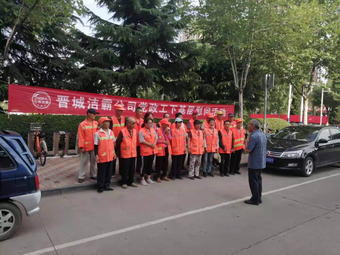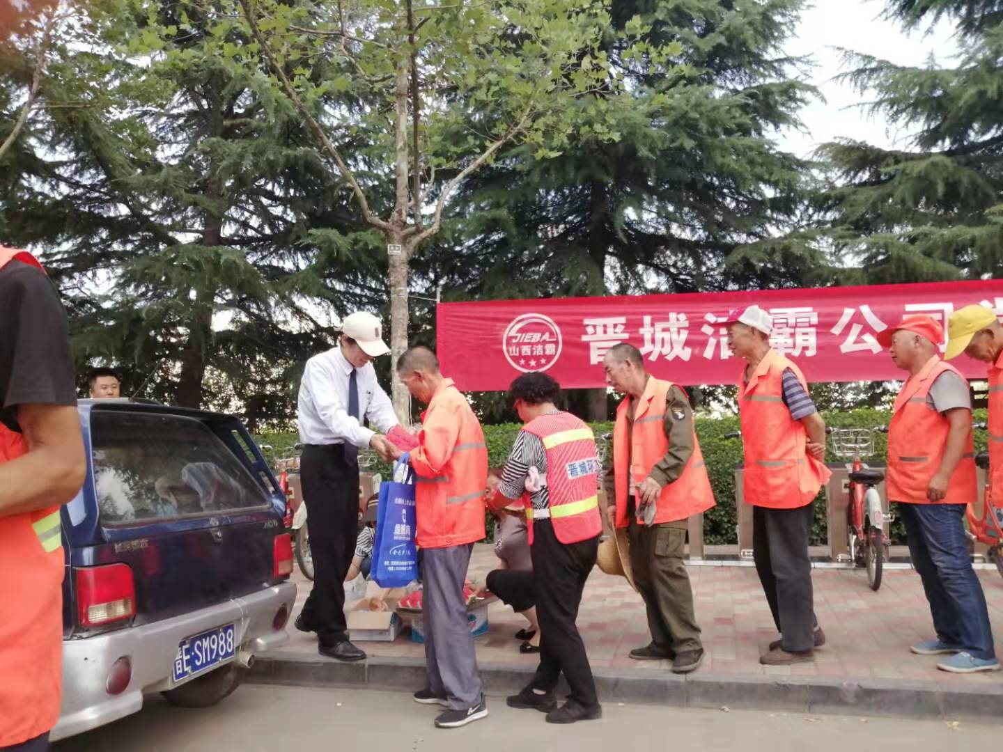 7月23日,是傳統(tǒng)的二十四節(jié)氣的大暑。下午,晉城潔霸公司黨政工慰問活動小組來到了暑期“情系一線”下基層慰問系列活動的第二站鳳西廣場,看望并慰問了辛勤奮戰(zhàn)在環(huán)衛(wèi)一線的員工,給他們送上清涼,送上關(guān)愛。