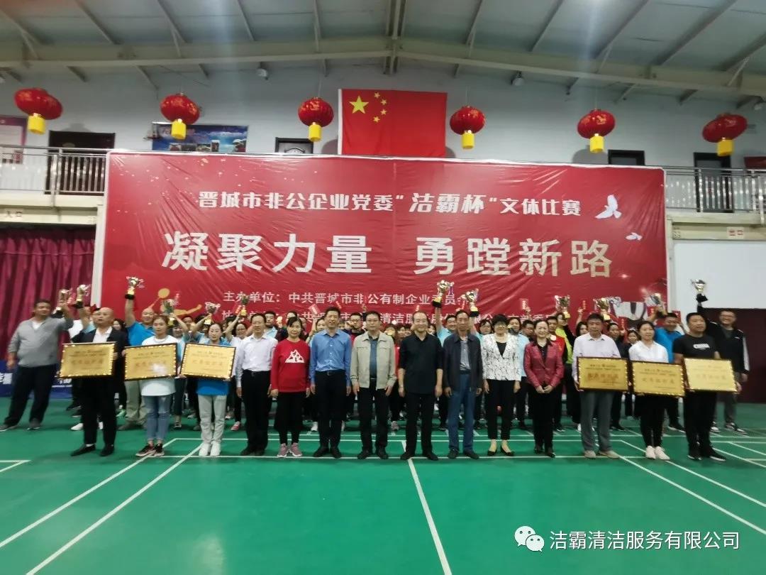 9月25日下午,晉城市非公企業(yè)黨委“潔霸杯”文體比賽落下帷幕。此次比賽由中共晉城市非公有制企業(yè)委員會(huì)主辦,中共晉城市潔霸清潔服務(wù)股份有限公司支部委員會(huì)冠名協(xié)辦。此次活動(dòng)的主題是“凝聚力量 勇蹚新路”,旨在新中國成立71周年之際,全面展示非公企業(yè)黨組織開展群眾性體育活動(dòng)的豐碩成果,以及廣大黨員干部創(chuàng)先爭(zhēng)優(yōu),奮發(fā)進(jìn)取,勇蹚新路,爭(zhēng)做時(shí)代先鋒的精神風(fēng)貌。