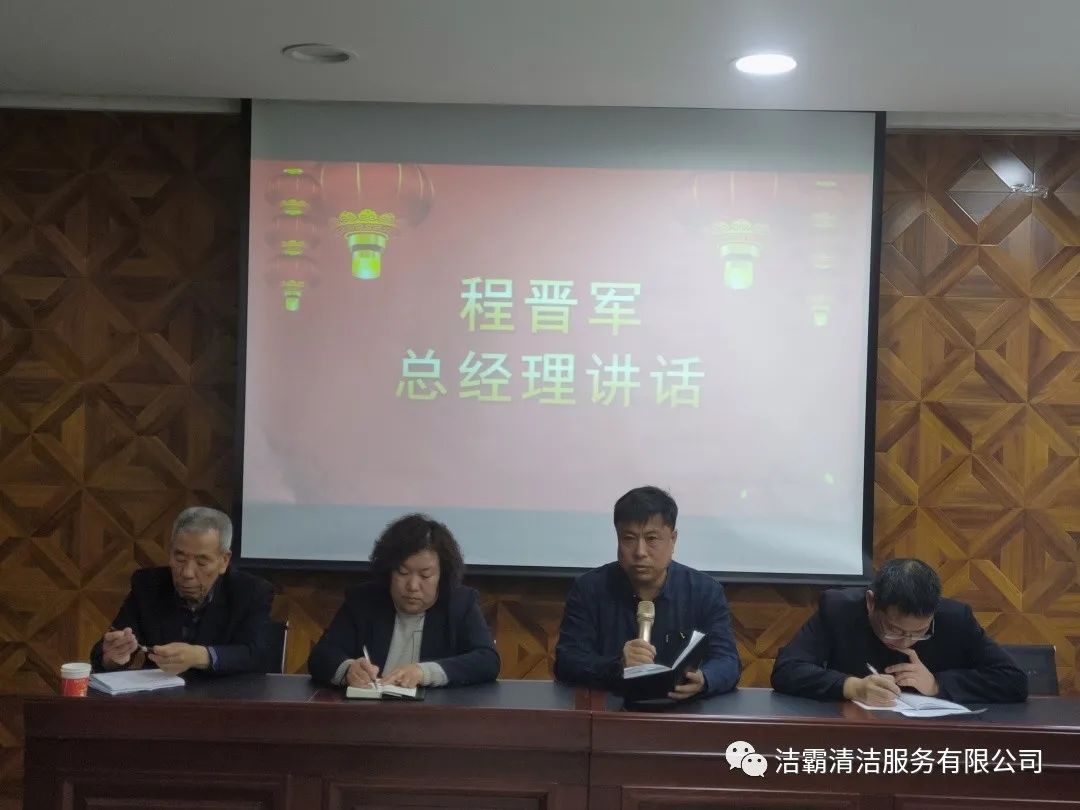 最后,公司總經(jīng)理程晉軍作了重要講話,對(duì)新的一年里組織架構(gòu)、產(chǎn)教融合、建立洗衣廠、創(chuàng)建勞務(wù)品牌、建立大運(yùn)營(yíng)中心、工程部市場(chǎng)化運(yùn)作、技能培訓(xùn)、提高用工人數(shù)、承包養(yǎng)老院、建立客戶管理系統(tǒng)等十項(xiàng)工作作了安排部署并提出了新的希望。