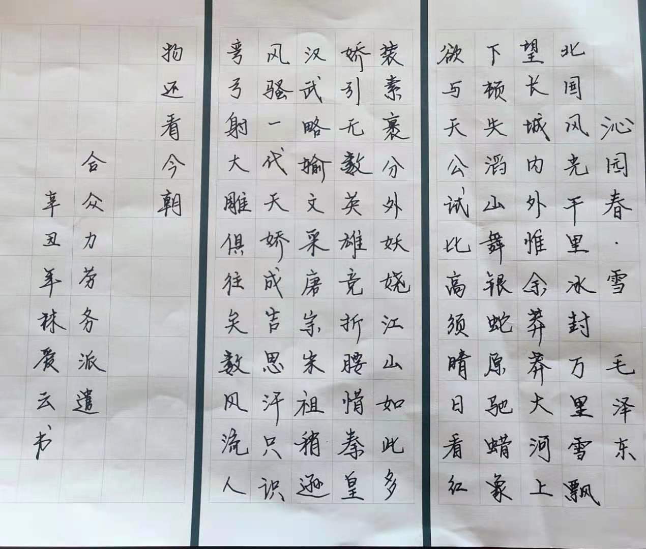 本次硬筆書法比賽活動(dòng)圍繞“喜迎建黨百年華誕”主題,以摘抄歌頌黨、歌頌祖國(guó)、歌頌企業(yè)的詩(shī)詞、散文、歌賦等為書寫內(nèi)容,參賽選手個(gè)個(gè)滿懷激情,用心書寫每一個(gè)漢字,筆畫流暢,結(jié)構(gòu)勻稱,整體美觀,表現(xiàn)出良好的書寫功底。公司組織相關(guān)人員對(duì)參賽員工的作品進(jìn)行客觀公正的評(píng)審,評(píng)選出一、二、三等獎(jiǎng)若干名。