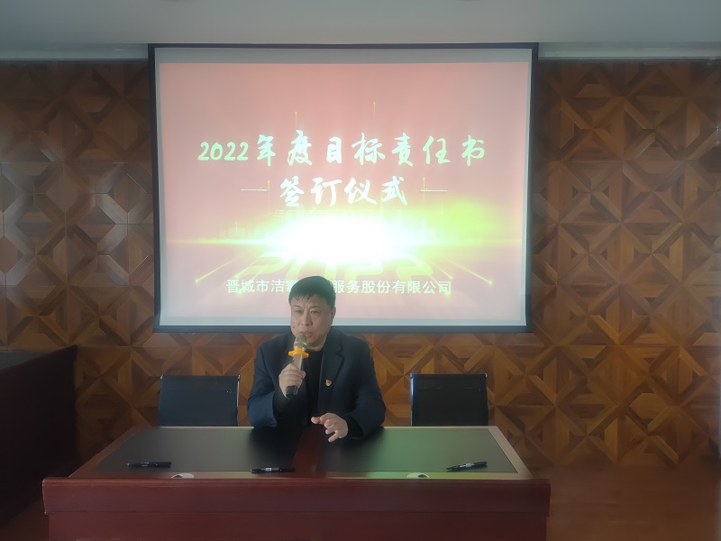 為落實(shí)公司2022年工作會議精神,進(jìn)一步壓實(shí)責(zé)任,確保年度工作目標(biāo)的順利完成, 3月1日下午,晉城市潔霸清潔服務(wù)股份有限公司在活動中心組織召開2022年度目標(biāo)責(zé)任書簽訂會議。公司黨支部書記、總經(jīng)理程晉軍,副總經(jīng)理張永智、史志霞,經(jīng)理助理,各子公司、分公司、部門經(jīng)理及項(xiàng)目負(fù)責(zé)人、主管等參加會議。
