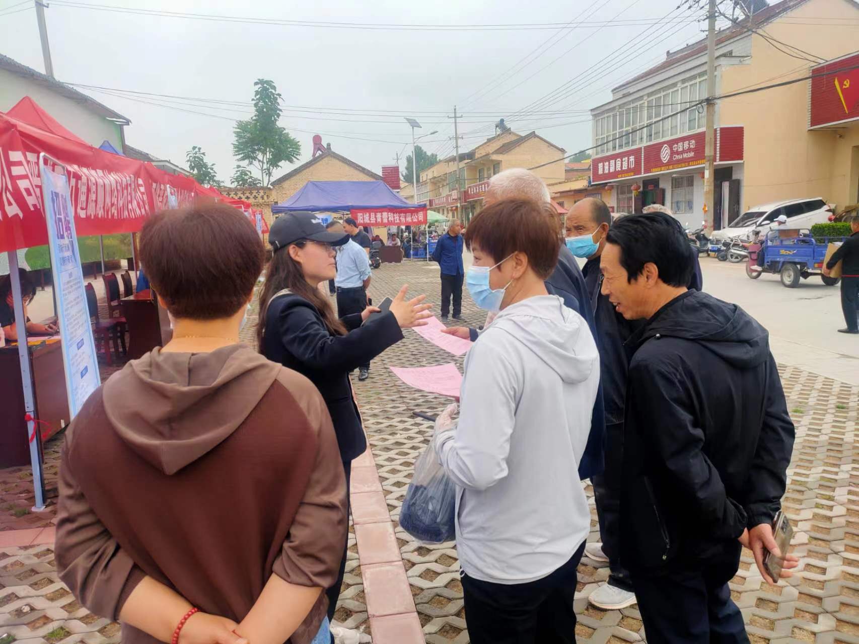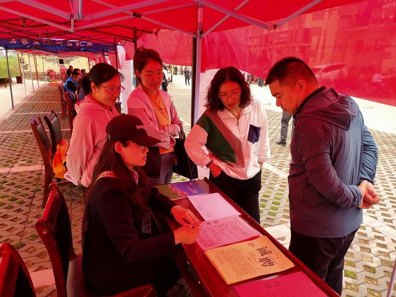 招聘活動(dòng)現(xiàn)場(chǎng)氣氛火熱,各個(gè)招聘展臺(tái)前來(lái)咨詢求職的村民絡(luò)繹不絕。公司支部副書(shū)記張小梅和人事專員宋天嬌熱情地向村民介紹公司情況以及招聘崗位、薪資待遇和工作環(huán)境等,面對(duì)面、“零距離”與村民溝通交流,發(fā)放招聘廣告200余張。其中有不少村民進(jìn)行了登記,初步達(dá)成就業(yè)意向。