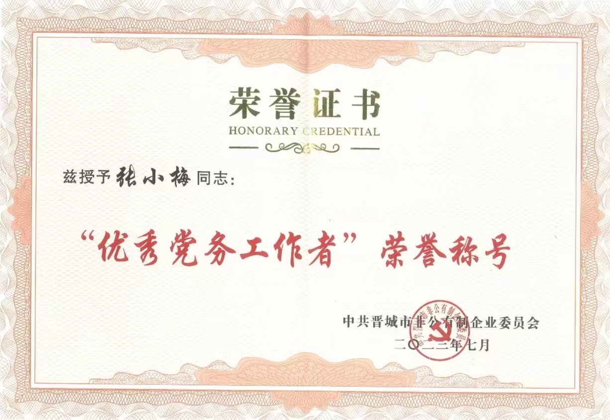 此次被市非公企業(yè)黨委授予“先進(jìn)基層黨組織”稱號(hào),是公司黨支部連續(xù)第五年獲得此項(xiàng)殊榮。近年來,公司黨支部堅(jiān)持黨建引領(lǐng),抓陣地,建機(jī)制,壯隊(duì)伍,提素質(zhì),設(shè)立黨員示范崗、示范區(qū),廣泛開展“戴黨徽、亮身份、樹形象”活動(dòng),持續(xù)推進(jìn)黨建與生產(chǎn)經(jīng)營深度融合,真正賦能企業(yè)高質(zhì)量發(fā)展。公司先后榮膺省、市級(jí)授予的“守合同重信用單位”“巾幗創(chuàng)業(yè)基地”“家政服務(wù)先進(jìn)單位”“商貿(mào)流通工作先進(jìn)單位”“山西省‘四新’中小企業(yè)”“晉城市模范單位”等榮譽(yù)稱號(hào)。等殊榮,公司黨支部分別獲得“‘雙強(qiáng)六好’省級(jí)示范黨組織”“‘雙強(qiáng)六好’市級(jí)示范黨組織”晉城市基層黨組織規(guī)范化建設(shè)示范點(diǎn)”等榮譽(yù)稱號(hào)。