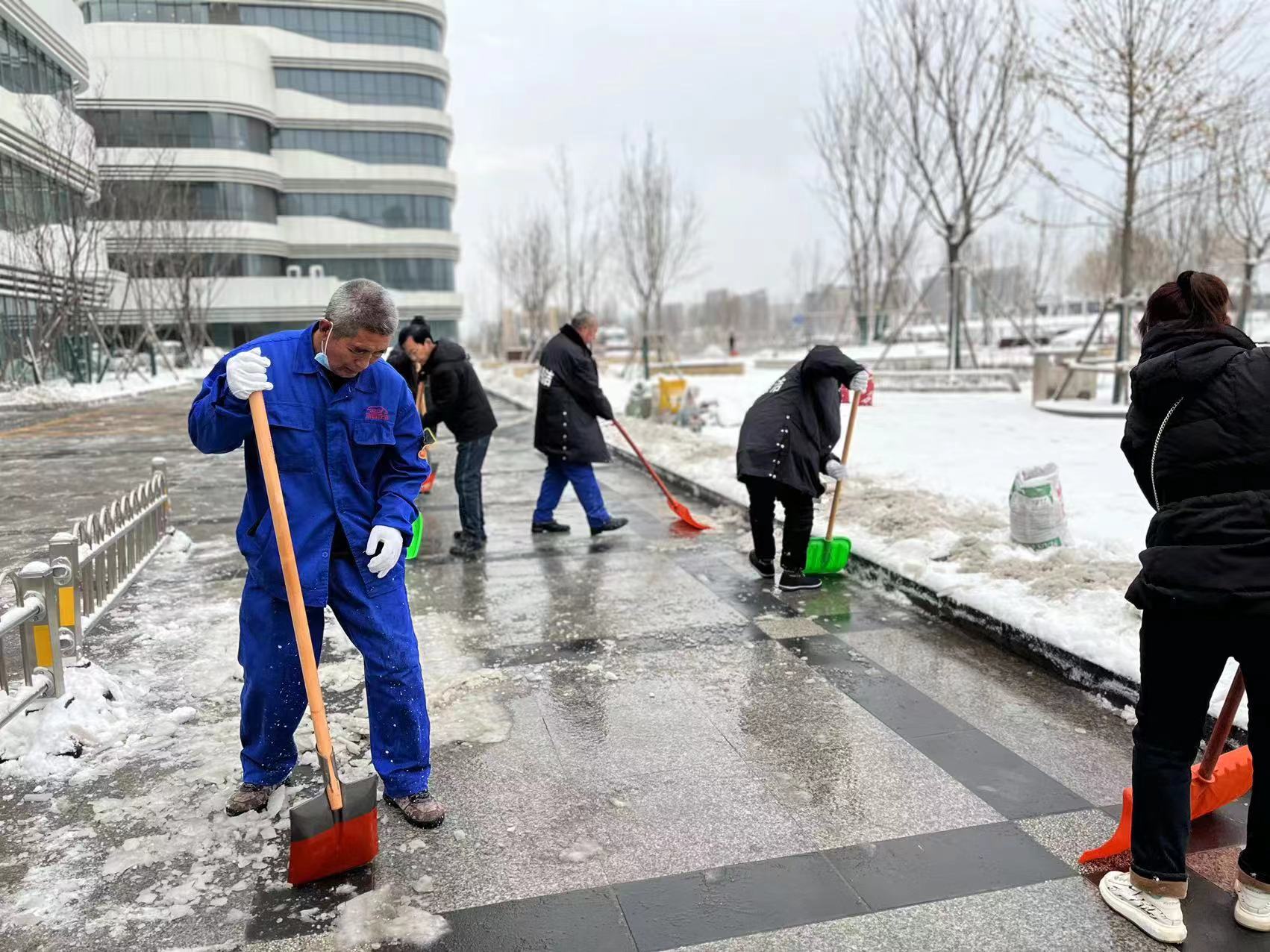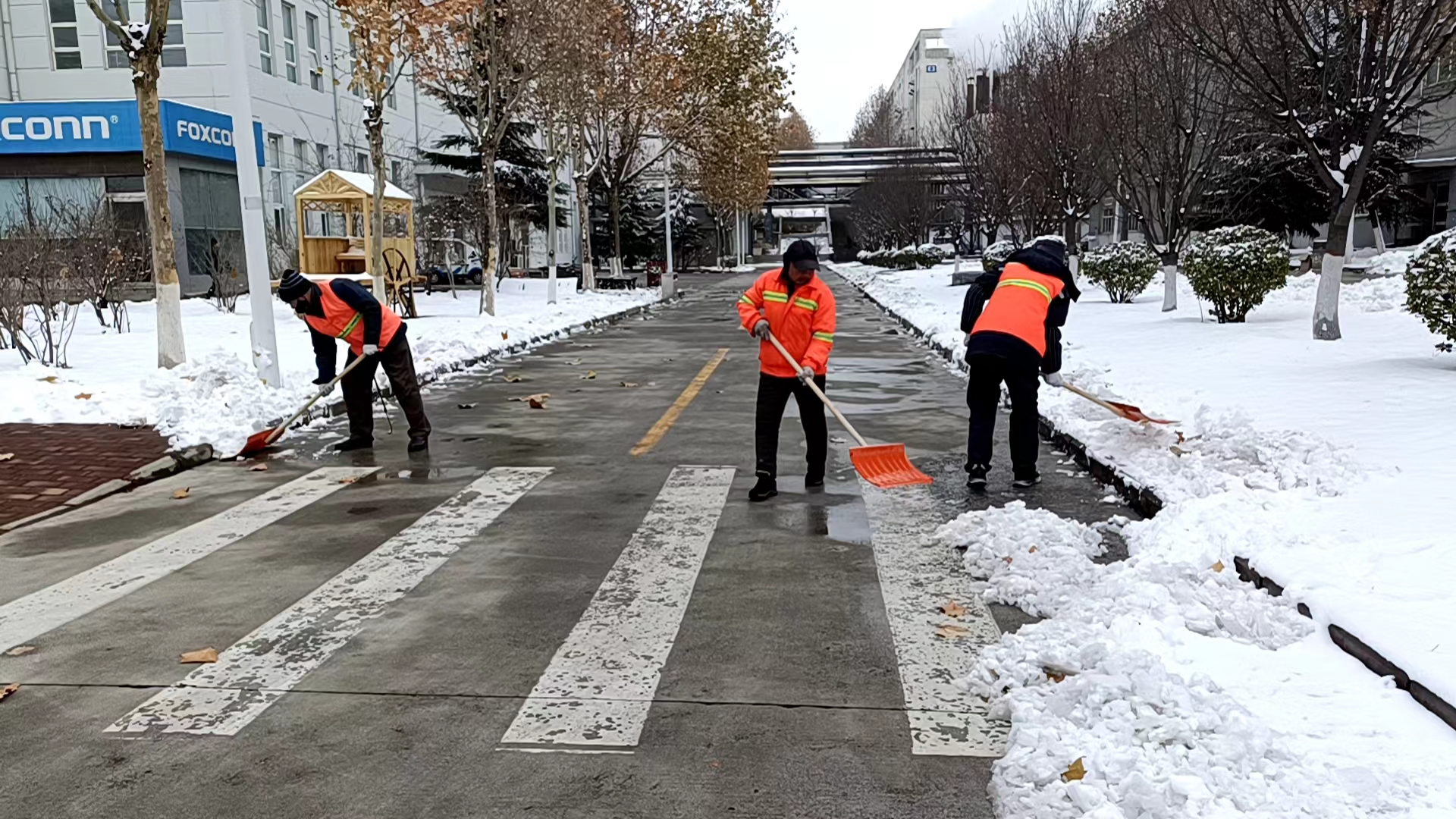 為保障群眾的安全以及道路的通暢,為廣大市民提供一個(gè)安全、便捷的出行環(huán)境,11日一大早,公司各個(gè)項(xiàng)目部、單位服務(wù)點(diǎn)的員工以雪為令,聞雪而動(dòng)積極行動(dòng)起來(lái),投身到清掃積雪的活動(dòng)中。下雪后的天氣雖然寒冷,但也無(wú)法阻擋大家掃雪的熱情,同志們個(gè)個(gè)干勁滿滿——有的用除雪鏟推,有的拿鐵鍬鏟,有的拿笤帚掃……大家分工明確,配合默契,各個(gè)掃雪現(xiàn)場(chǎng)都是熱火朝天,為群眾安全出行開辟出了一條“暖心路”。充分彰顯了潔霸服務(wù),展示了潔霸形象。