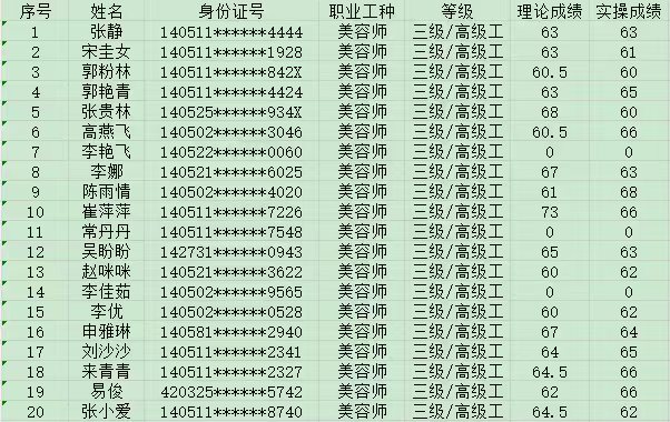 2024年10月13日第12批美容師高級(jí)認(rèn)定人員成績公示